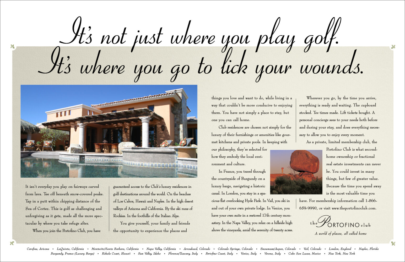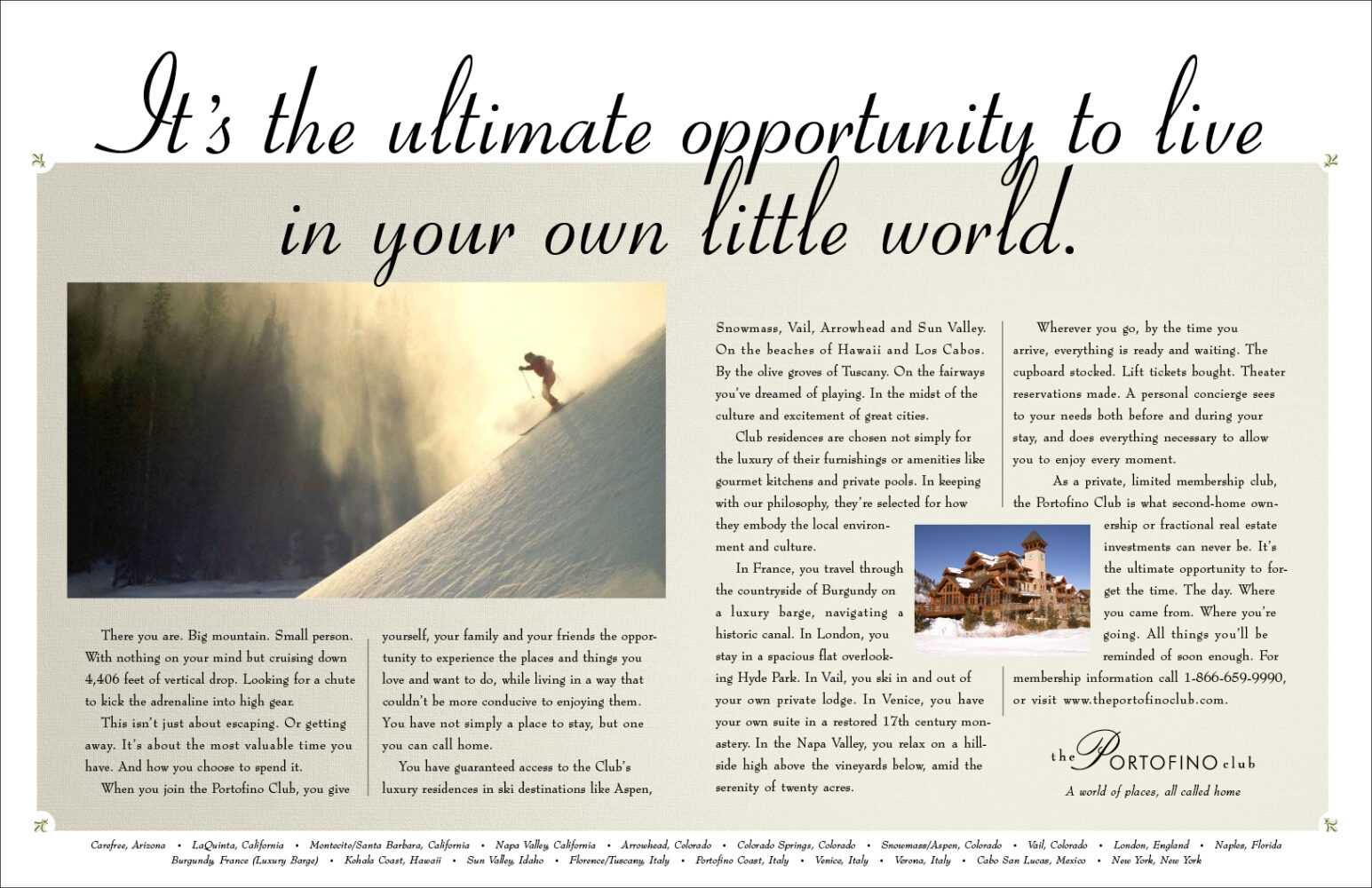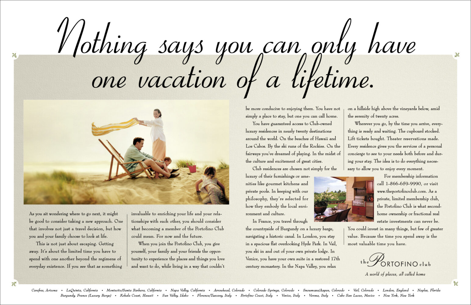 To convince people to spend over $200,000 to join, the Portofino Club needed to leverage something of greater worth than their $1.7 million homes and alluring destinations: The rare opportunities we have beyond our everday existence to enrich our lives and our relationships with those closest to us.