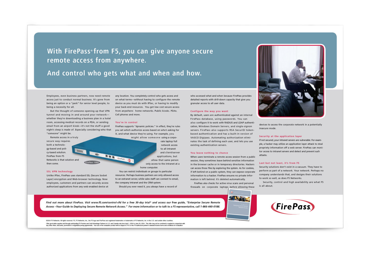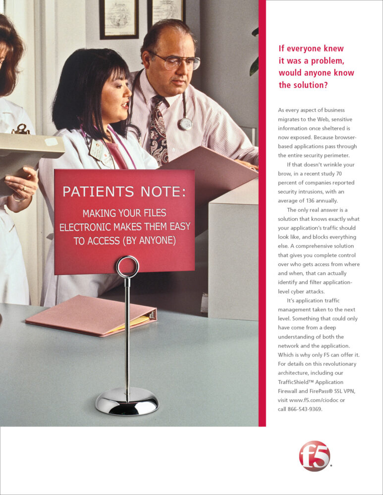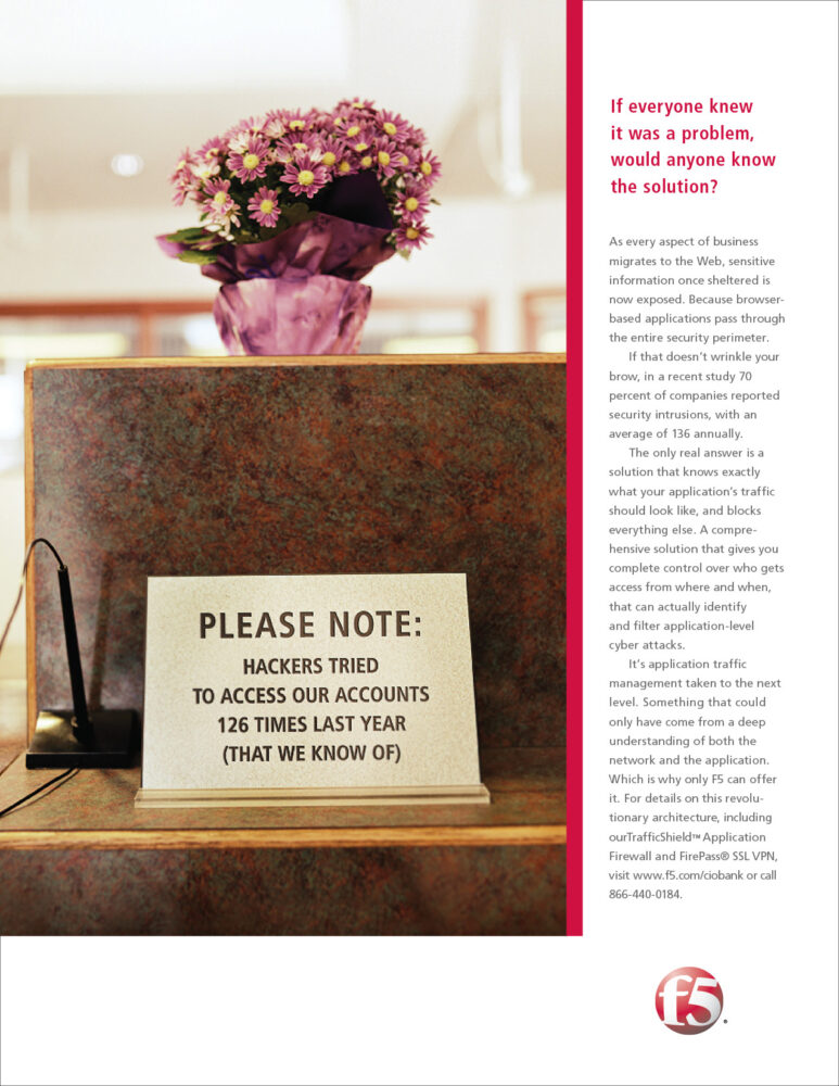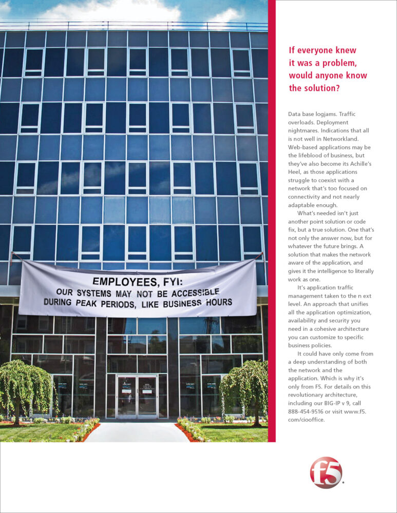 Web-based applications are critical to a company’s success. But the reality is, most aren’t doing their job as intended. F5 helps organizations seamlessly scale cloud, data center, and software-defined networking deployments to successfully deliver applications to anyone, anywhere, at any time. So company’s can be confident in their control over who gets access from where and when on their networks.