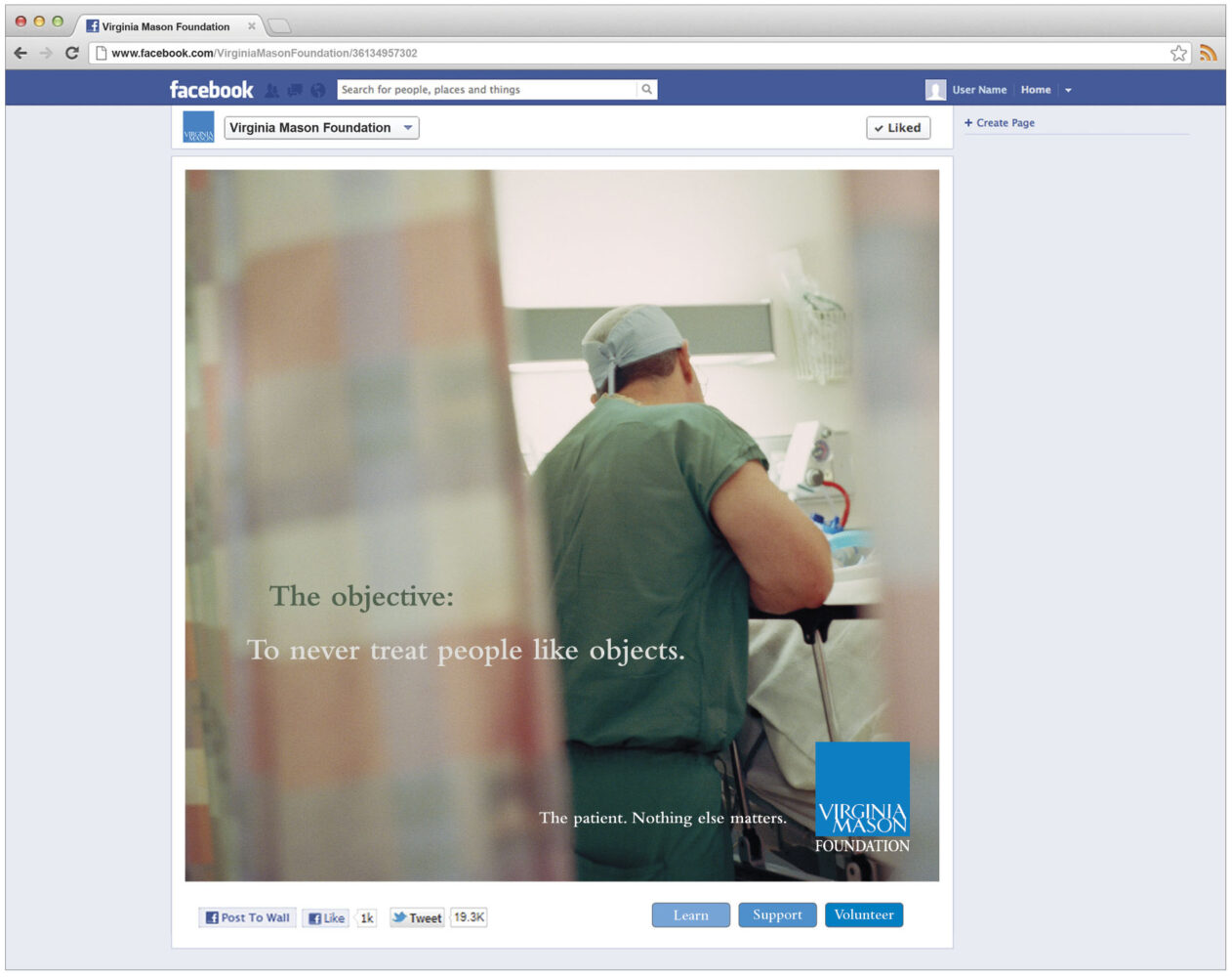 Virginia Mason, one of the most progressive healthcare systems in the country, was building a completely new concept of “hospital”; one that makes critical care more efficient and effective by putting the patient at the center of everything they do. So their communications needed to do the same, and put the patient at the center of everything they say.